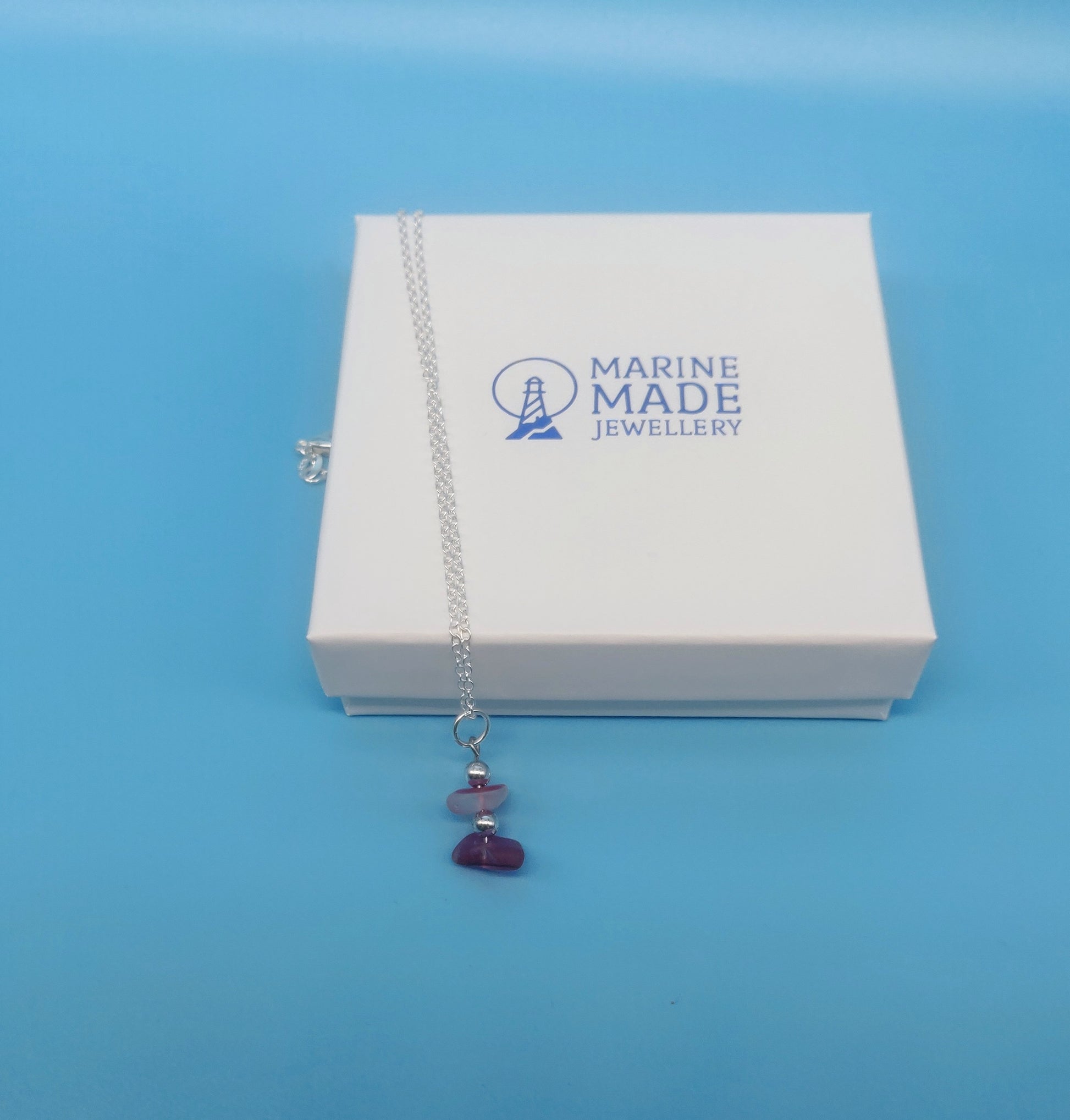 Hand Made Sea Glass Pendant Necklace With Silver Plated Chain which makes an ideal present.